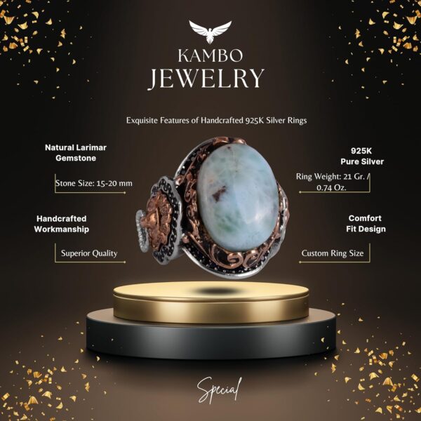 KAMBO El Yapımı Larimar Taşı Yüzüğü ile stilinizi geliştirin ve güç ile huzurun zamansız sembollerini kucaklayın.