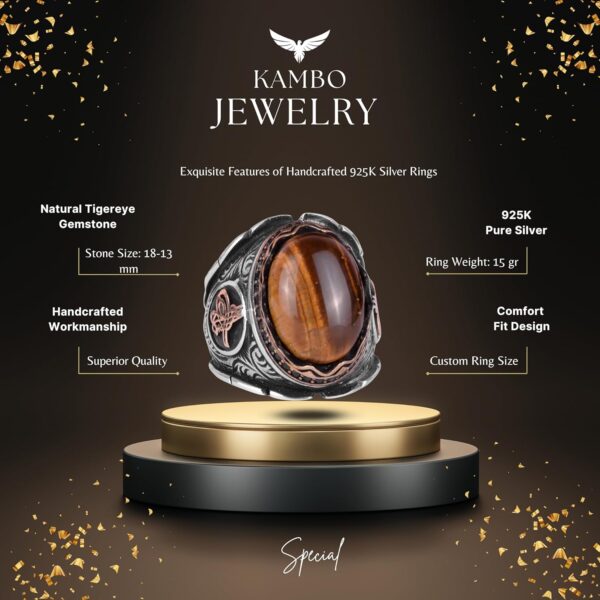 Cesur zarafetin dünyasına adım atın, KAMBO El Yapımı Kaplan Gözü Doğal Taş Yüzük ile. Bu olağanüstü parça, çarpıcı görünümü ve güçlü koruyucu özellikleriyle tanınan büyüleyici Kaplan Gözü taşını barındırıyor. En kaliteli 925K katı gümüş ile hazırlanmış ve mükemmellik için el işçiliği ile yapılmış bu yüzük, cesaret ve güç ruhunu yansıtıyor. İster özel bir etkinlik için giyinin, ister günlük kıyafetlerinizi tamamlayın, KAMBO Kaplan Gözü Yüzüğü, cesur bir hayat için mükemmel bir arkadaşınızdır.