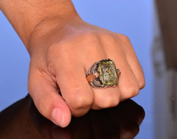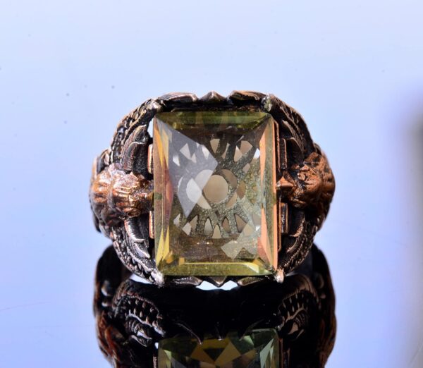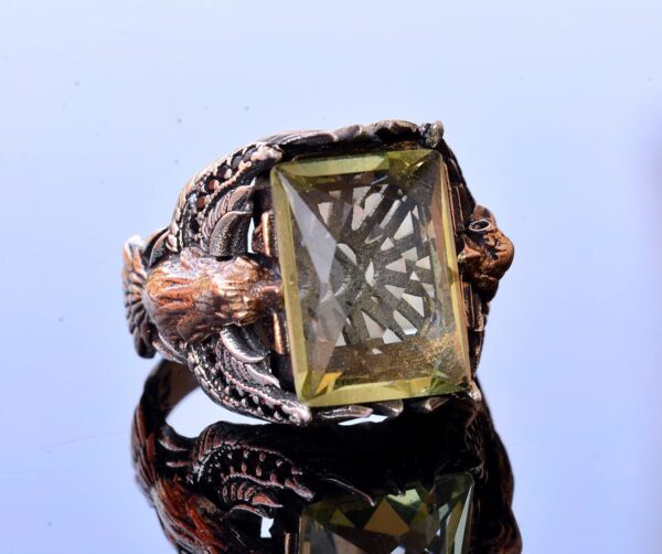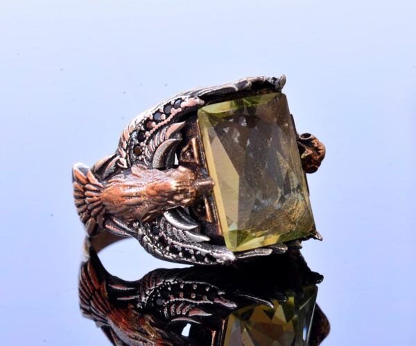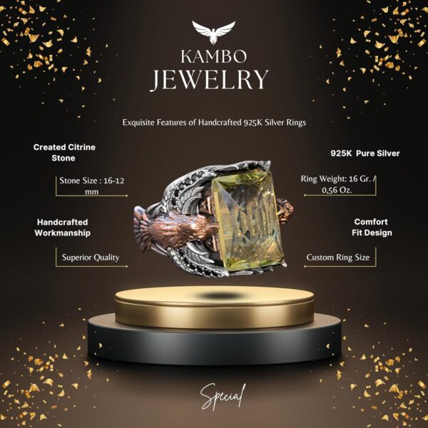 El Yapımı Yapay Citrin Taşlı Yüzük, Kartal Tasarımlı Sterlin Gümüş Erkek Yüzüğü – Neşe ve Refah Sembolü