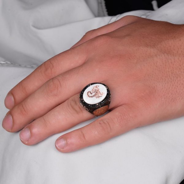 Akrep tasarımı, Davud Yıldızı ile birleştiğinde yüzüğe manevi ve sembolik bir anlam katmaktadır. Akrep, koruma, dayanıklılık ve zorluklarla güçle yüzleşme yeteneğini simgeler; bu da bu yüzüğü kişisel ve manevi gücün güçlü bir ifadesi haline getirir.