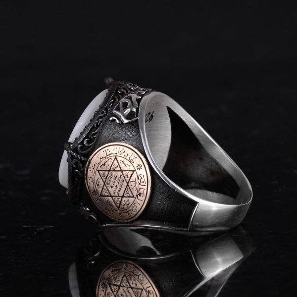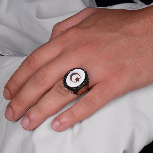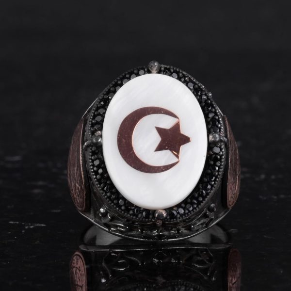 Bu yüzüğün tasarımı, birlik ve koruma sembolü olan Ay ve Yıldız ile birlikte, derin bir manevi ve kültürel katman ekleyen Davut Yıldızı’nı içermektedir. Bu kombinasyon, yüzüğü inanç ve mirasın güçlü bir ifadesi haline getirir.