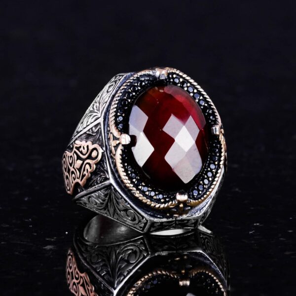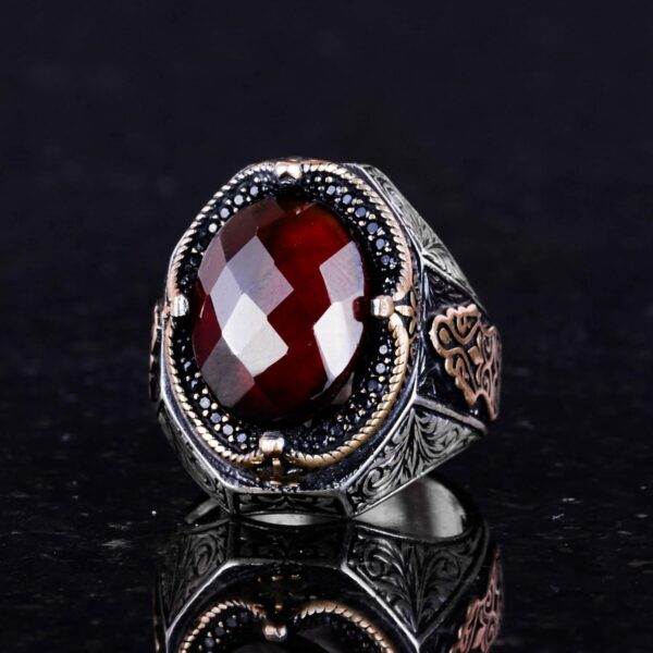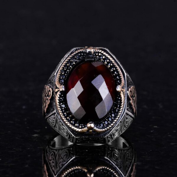 El Yapımı Doğal Granat Taşlı Yüzük – Derin 925K Katı Gümüş Erkek Yüzüğü