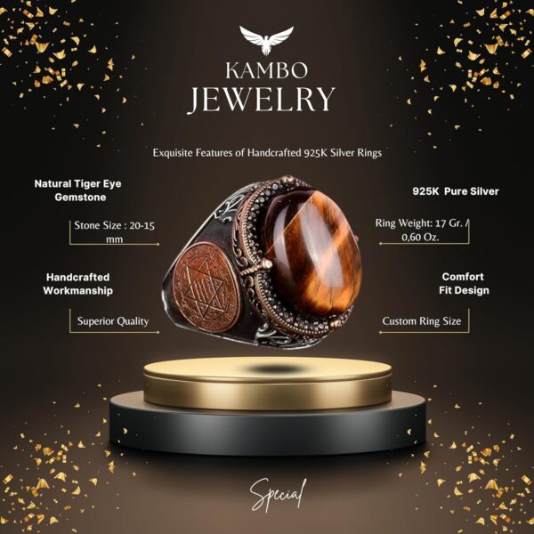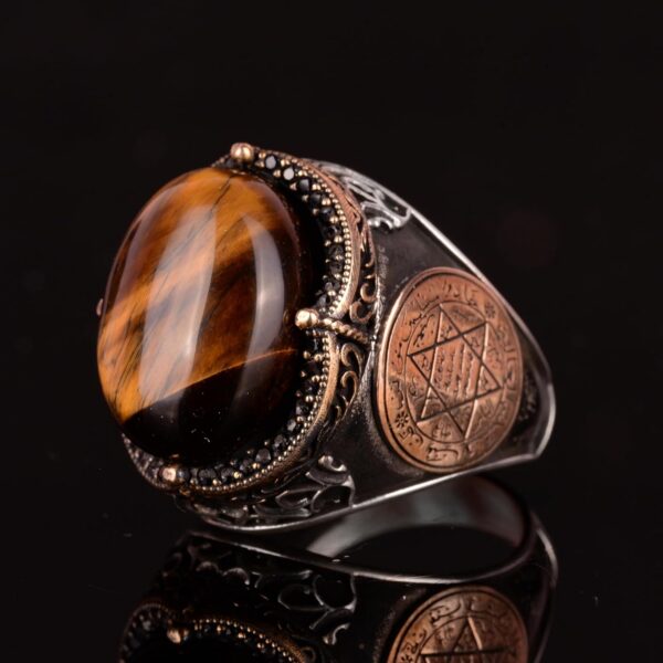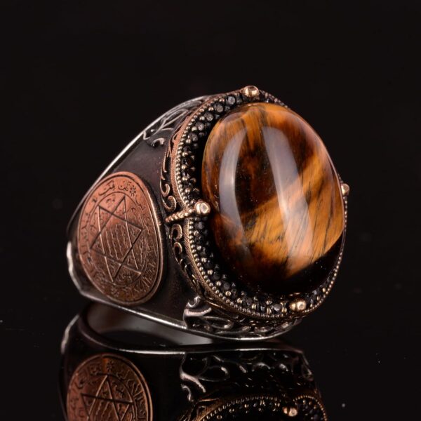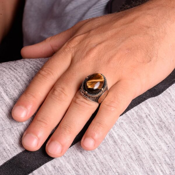 El Yapımı Doğal Kaplan Göz Taşı Yüzük – 925 Ayar Gümüş Erkek Takısı