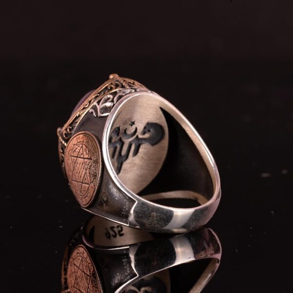 El Yapımı Doğal Kaplan Gözü Taşı Yüzük – Solomon Yıldızı Emblemi – 925 Ayar Gümüş Erkek Takısı Bu güzel el yapımı erkek yüzüğü, altın ve kahverengi tonlarının büyüleyici bantlarıyla bilinen muhteşem doğal Kaplan Gözü taşını sergilemektedir. Yüzük, dayanıklılığı ve zamansız bir görünüm sağlaması için yüksek kaliteli 925 ayar gümüşten yapılmıştır. Yüzüğü süsleyen karmaşık Solomon Yıldızı emblemi, bilgelik ve koruma sembolüdür ve bu muhteşem parçaya bir dokunuş mistik ve geleneksel bir hava katmaktadır. Sembolik Amblem: Solomon Yıldızı Bu yüzükte yer alan Solomon Yıldızı emblemi, bilgelik ve korumanın güçlü bir sembolüdür. Bu emblemin, geleneksel olarak giyenine rehberlik sağladığı ve negatif enerjilerden koruduğu düşünülmektedir. Bu emblemin yüzük tasarımına dahil edilmesi, onu sadece şık bir aksesuar değil, aynı zamanda anlamlı bir parça haline getirir. Ürün Özellikleri: 925 ayar gümüşten el yapımı Muazzam doğal Kaplan Gözü taşı, büyüleyici altın ve kahverengi bantlarla süslenmiş Karmaşık Solomon Yıldızı emblemi ile süslenmiş Özel günlerde hediye vermek için mükemmel Tarzınızı yükseltin ve mücevher koleksiyonunuza bir dokunuş zarafet katın. El Yapımı Doğal Kaplan Gözü Taşı Yüzüğümüzü Solomon Yıldızı Emblemi ile birlikte sipariş edin, zarafet ve işçiliğin mükemmel birleşimini deneyimleyin.
