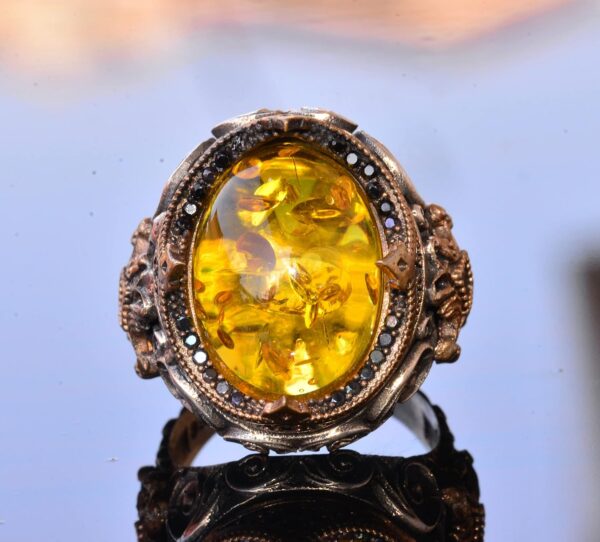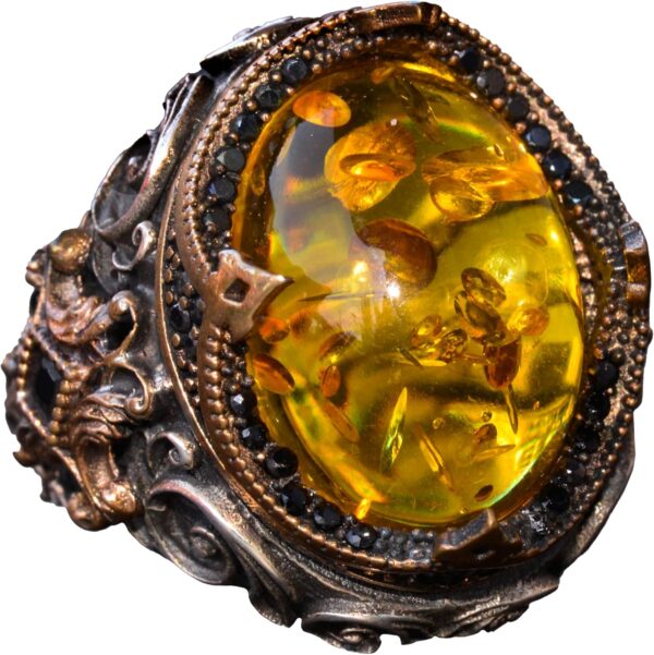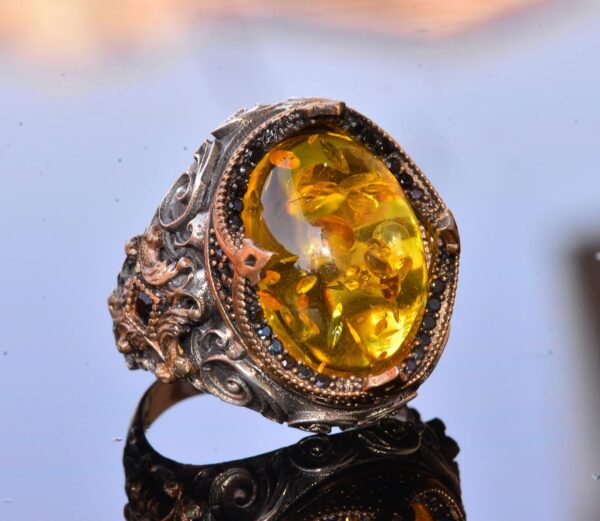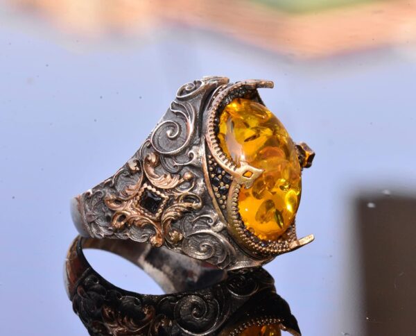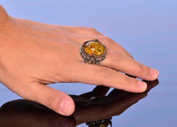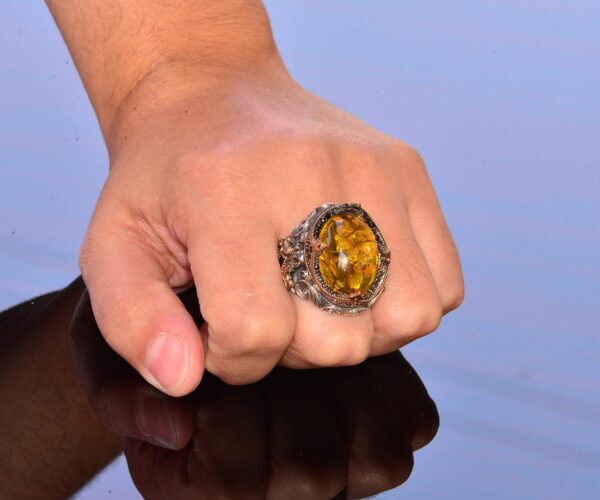 El Yapımı Doğal Olmayan Taş Yüzük – 925 Ayar Gümüş Erkek Takısı (Bal Amberi)