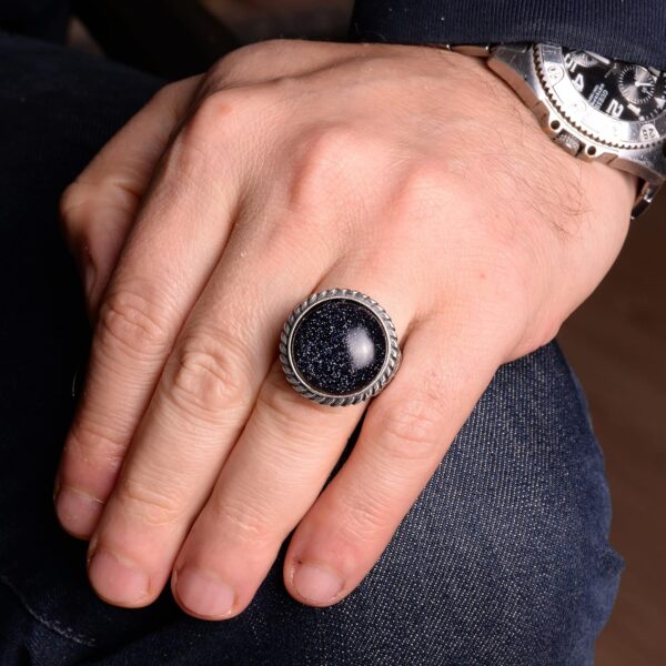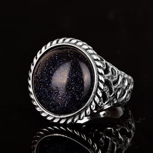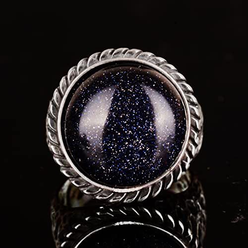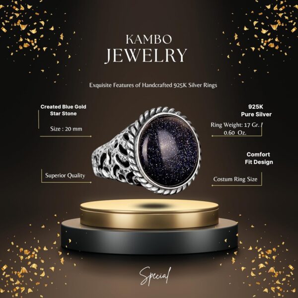 El Yapımı Erkek Yüzüğü, 925K Saf Gümüş Yüzük, Mavi Altın Yıldız Taşı