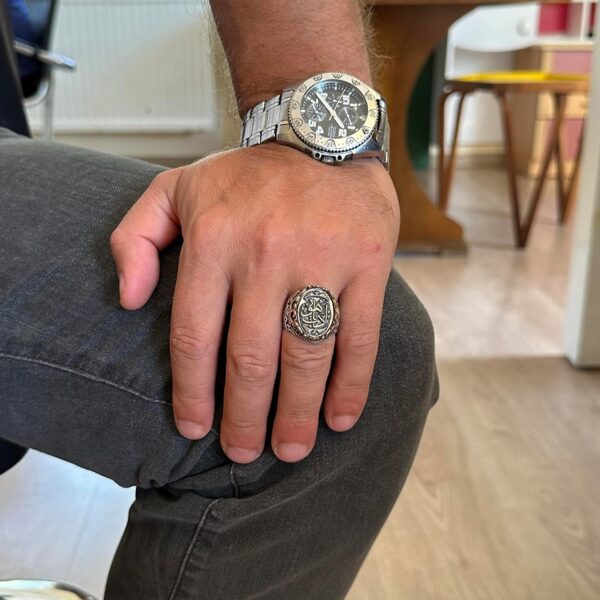 El Yapımı Erkekler İçin Dini Takı, 925 Ayar Gümüş Yüzük, Sembol Yüzük (Stil-5)