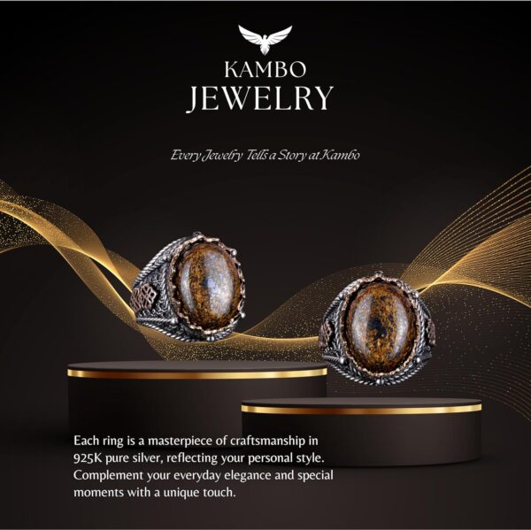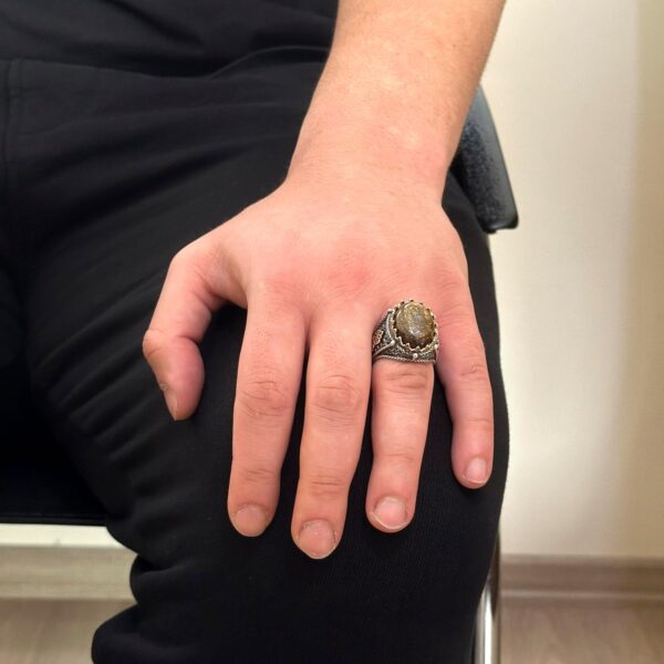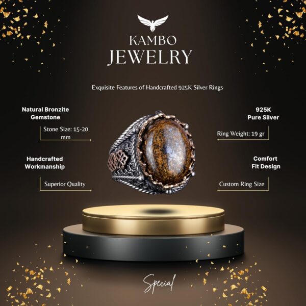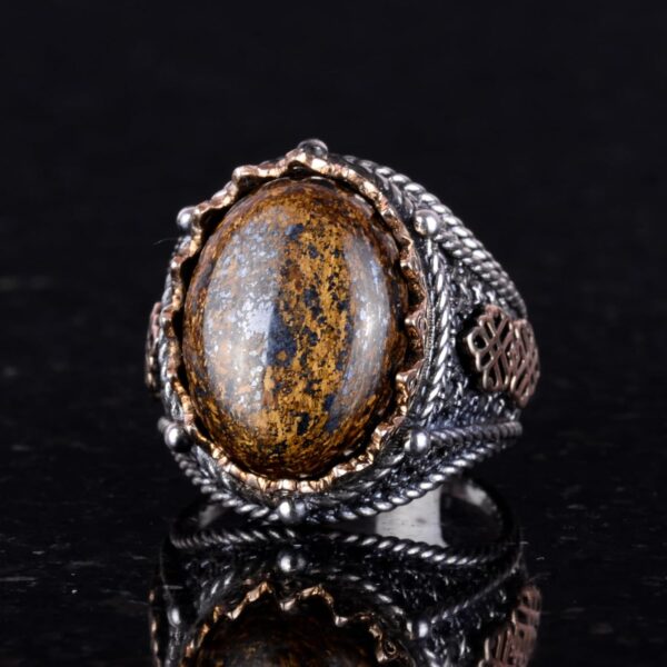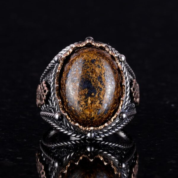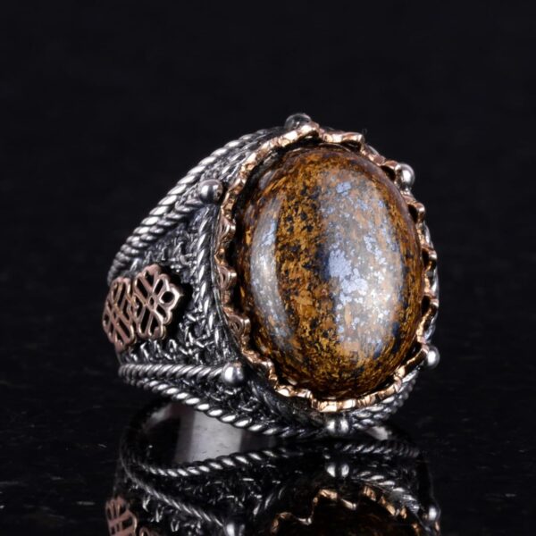 El Yapımı Gerçek Doğal Bronzit Taş Yüzük, 925 Ayar Katı Gümüş Erkek Yüzüğü