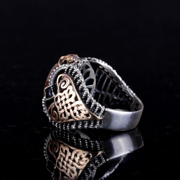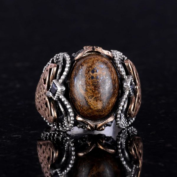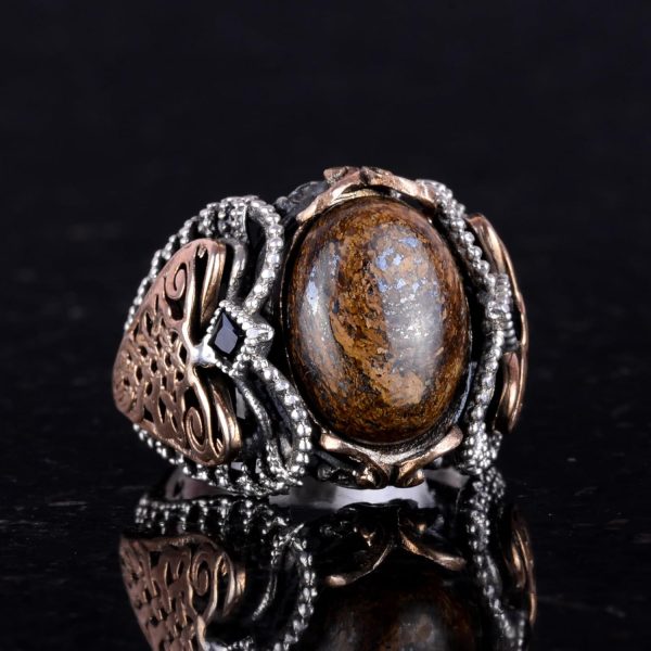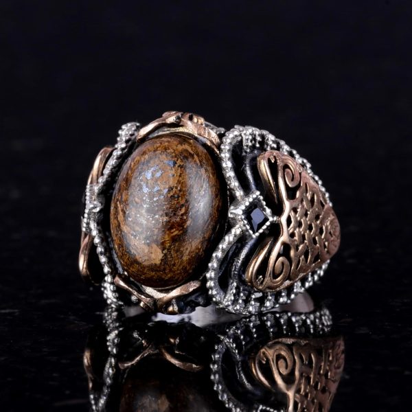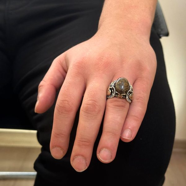 El Yapımı Gerçek Doğal Bronzit Taş Yüzük, 925 Ayar Katı Gümüş Erkek Yüzüğü