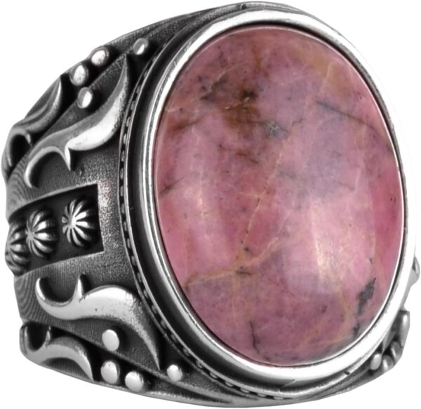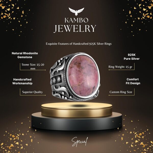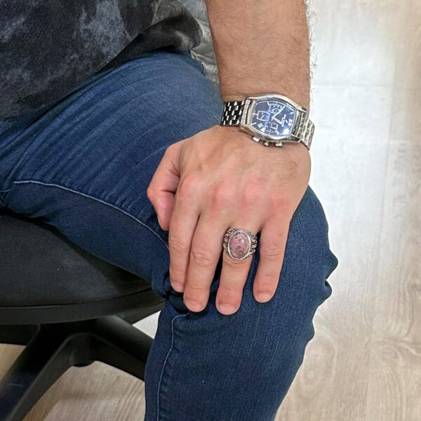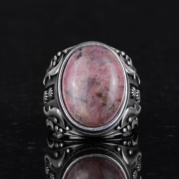 El Yapımı Gerçek Doğal Rodonit Pembe Taşı Yüzük, 925 Ayar Gümüş Yüzük, Erkek Yüzüğü
