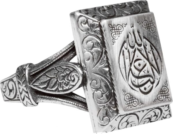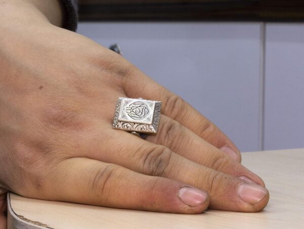 Bu yüzük, uzun süreli parlaklık ve dayanıklılık sağlayan yüksek kaliteli 925 ayar gümüşten yapılmıştır. İslam sembollerini içeren karmaşık tasarımı, yetenekli zanaatkarlar tarafından özenle işlenmiştir ve her parça inanç ve ruhsallığın benzersiz bir temsilini sunar.