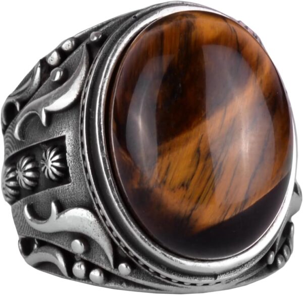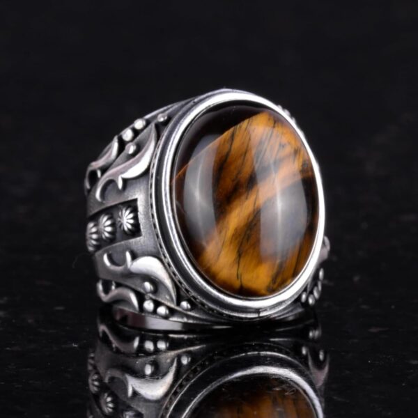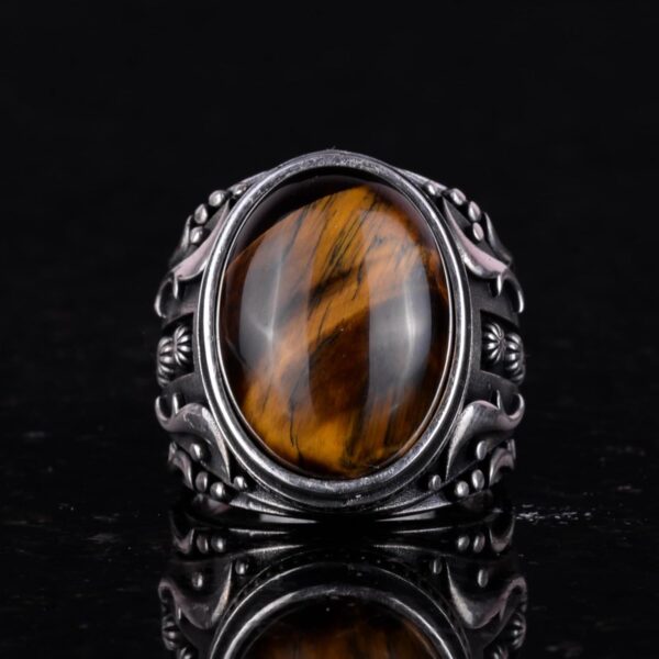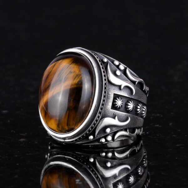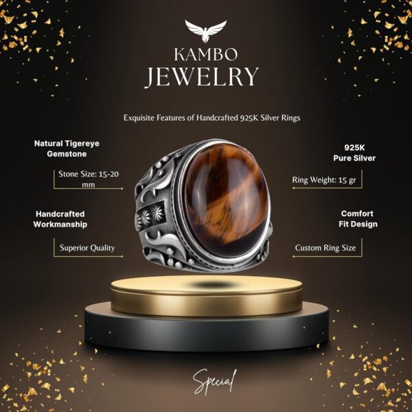 El Yapımı Kaplan Göz Taşı Yüzük, 925 Ayar Sert Gümüş Erkek Yüzüğü, Cesur Tasarım