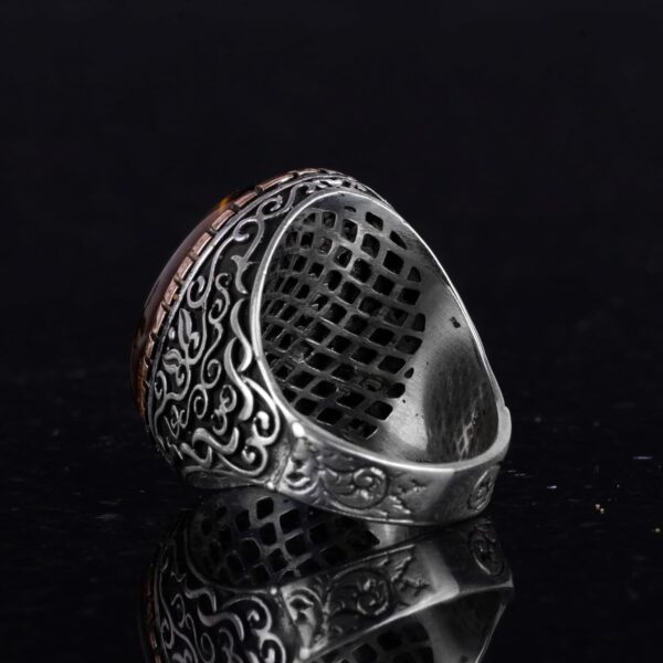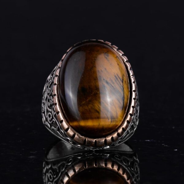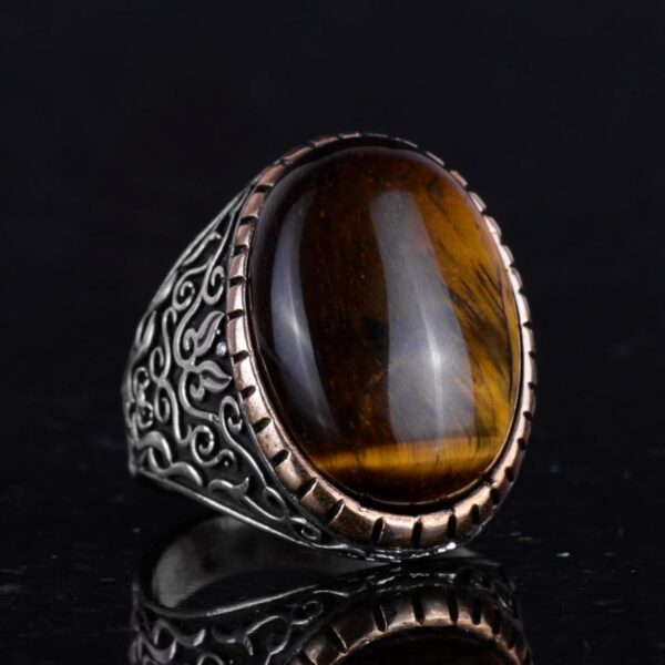 El Yapımı Kaplan Gözlü Taş Yüzük, Sultan Yüzük, 925 Ayar Saf Gümüş Erkek Yüzük, Cesur Tasarım