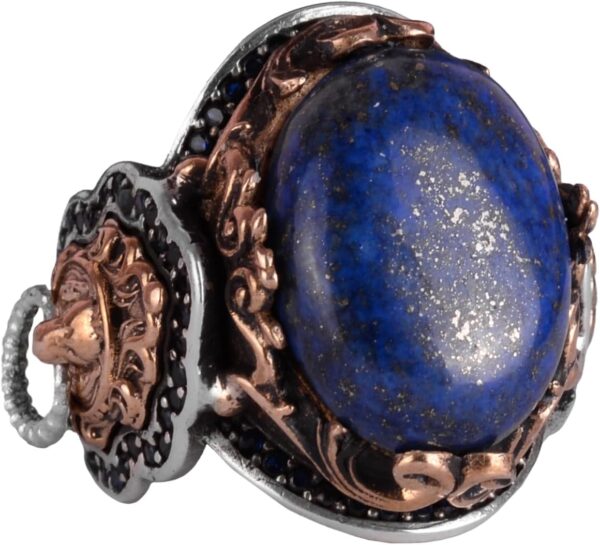 Doğal Lapis Lazuli Taş Yüzük, Aslan Başı Erkek Yüzüğü – Kraliyet 925K Katı Gümüş Erkek Yüzüğü – Bilgelik ve Gerçek Tasarımı