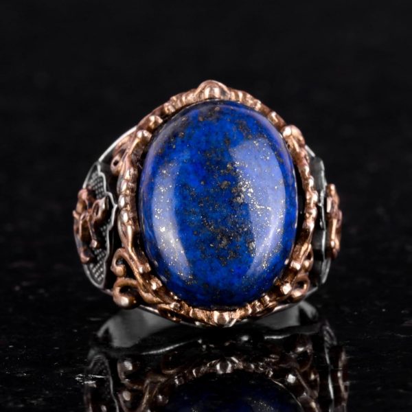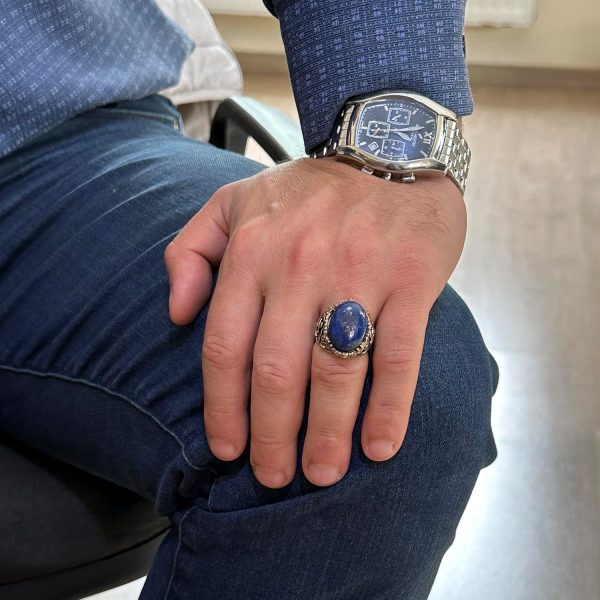 El Yapımı Lapis Lazuli Taş Yüzük, Yüzücü Halka Yüzük, 925K Sert Gümüş Erkek Yüzük – Bilgelik ve Gerçek Tasarımı