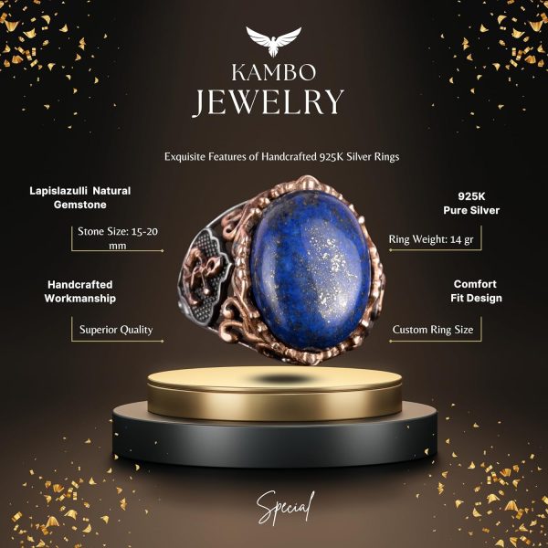 Antik bilgelik dünyasına adım atın, KAMBO El Yapımı Lapis Lazuli Taş Yüzük ile. Parlak 925K saf gümüş ile tasarlanan bu yüzük, Lapis Lazuli’nin büyüleyici mavi tonunu sergiliyor ve gece gökyüzündeki yıldızları andıran altın pirit lekeleriyle süslenmiştir. Yüzyıllar boyunca kraliyet, bilgelik ve gerçeklik taşı olarak kutlanan Lapis Lazuli, kişisel gelişimi ve aydınlanmayı teşvik eder. Her yüzük, anlam ve tarih taşıyan parçalar yaratma konusundaki bağlılığımızın bir kanıtıdır; bu nedenle KAMBO Lapis Lazuli Yüzüğü sadece bir takı parçası değil, bilgi ve öz keşif ışığıdır. Yüzük Ağırlığı: 11gr Taş Boyutu: 20-15mm