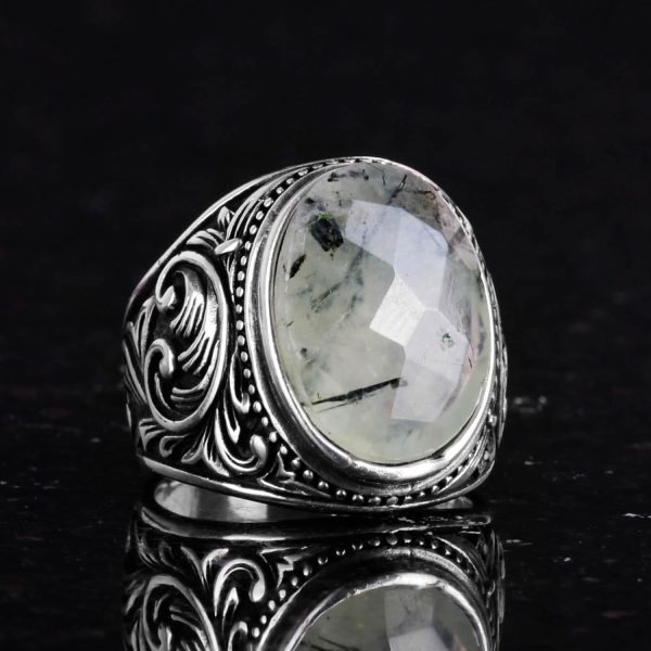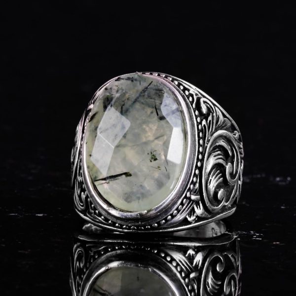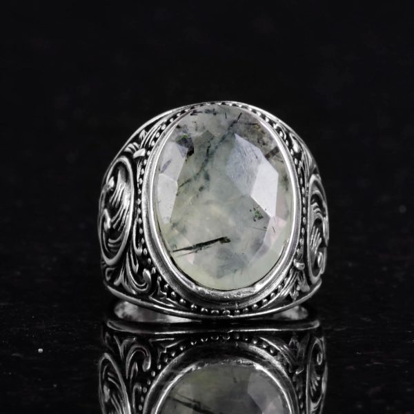 El Yapımı Prehnit Taş Yüzük – Şifa Veren 925 Ayar Sert Gümüş Erkek Yüzüğü – Huzur ve İçgörü Tasarımı