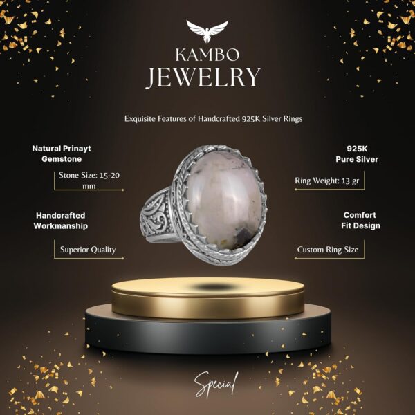 El yapımı Prehnit Yeşim Taşı Yüzük – Şifa Veren 925 Ayar Katı Gümüş Erkek Yüzük – Huzur ve İçgörü Tasarımı