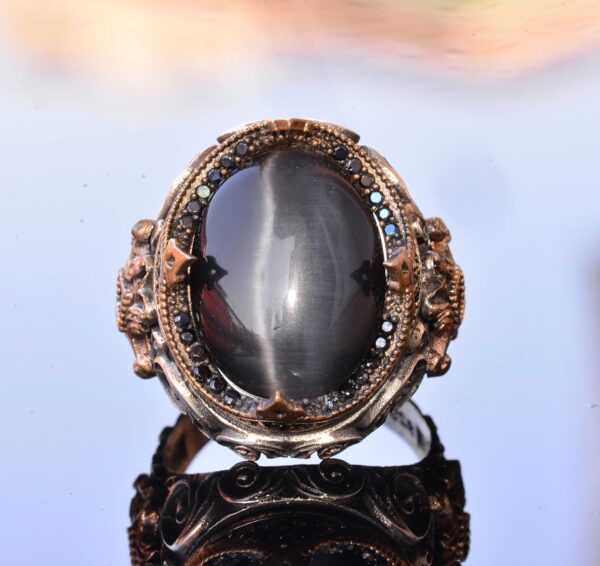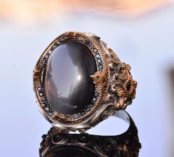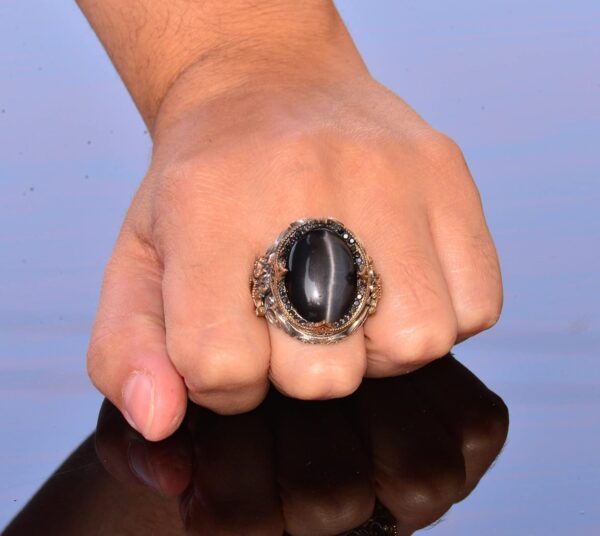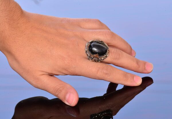 El Yapımı Siyah Kedi Gözü Taşı Yüzük – 925 Ayar Gümüş Erkek Takısı