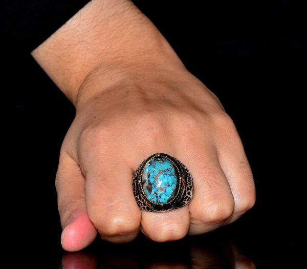El Yapımı Sterlin Gümüş Erkek Yüzük | Doğal Turkuaz Taşı | Cesur ve Toprak Tonlarında Tasarım