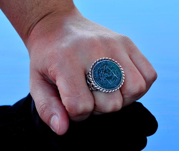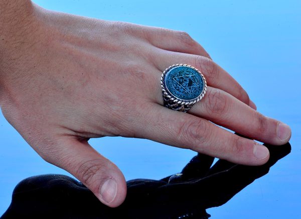 Bu yüzük, Hz. Süleyman Yıldızı amblemi ile süslenmiştir ve tarihsel ve mistik bir zarafet katmaktadır. Detaylı işçiliği, tarihi zenginlikleri ve antik sembollerin mistik özelliklerini takdir edenler için mükemmel bir parça yapmaktadır.