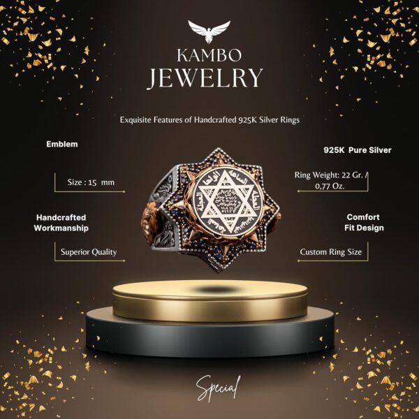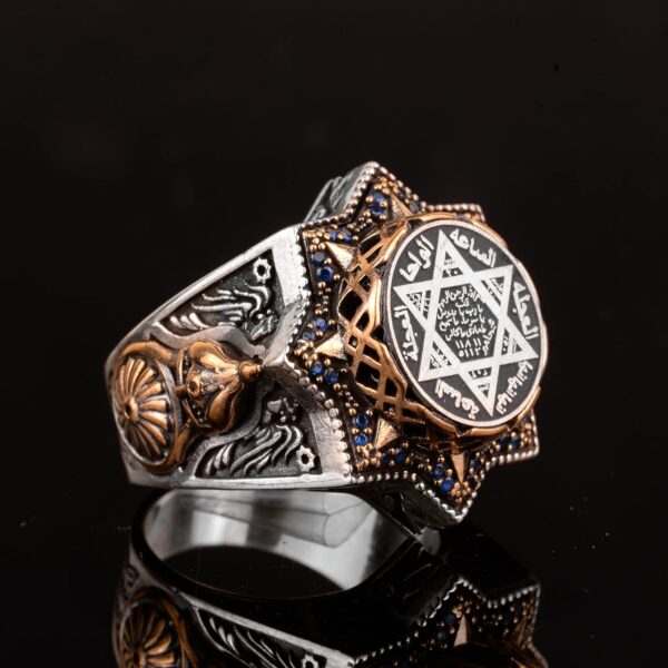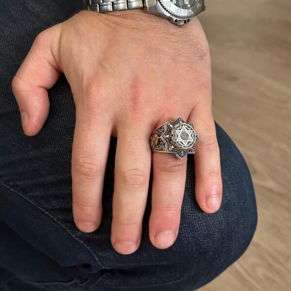 El Yapımı Süleyman Yıldızı Yüzük – 925 Ayar Gümüş Erkek Yüzük David Yıldızı Sembolü ile
