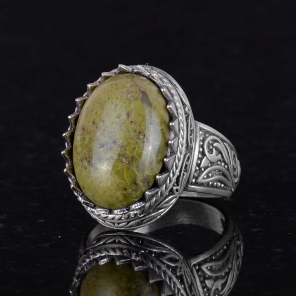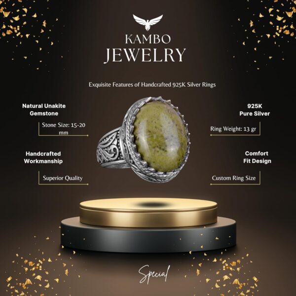 El Yapımı Unakite Taş Yüzük – 925 Ayar Sert Gümüş Erkek Yüzük – Sanatsal Tasarım