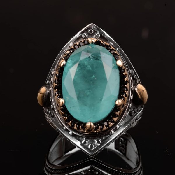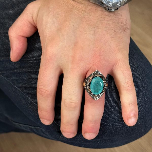 El Yapımı Vintage Erkek Yüzüğü – 925 Ayar Gümüş ile Üretilmiş Paraiba Taşı, Artisan Takı