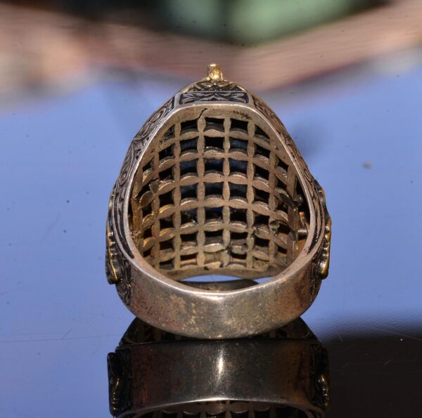 El Yapımı Vintage Tasarım Zümrüt Yüzük – 925 Ayar Gümüş Erkek Yüzük Altın Aksamlarıyla (Lapis Lazuli)