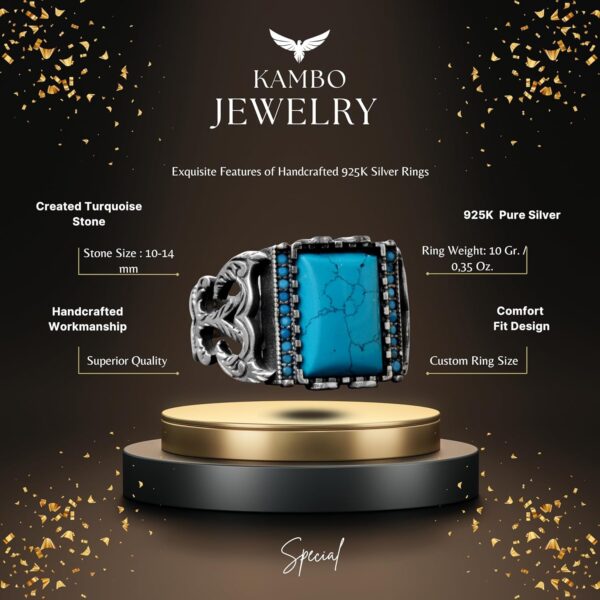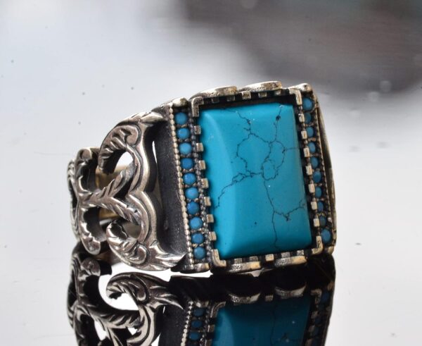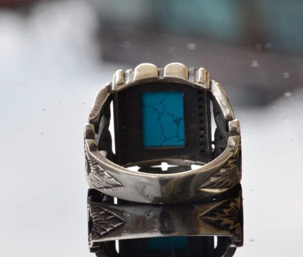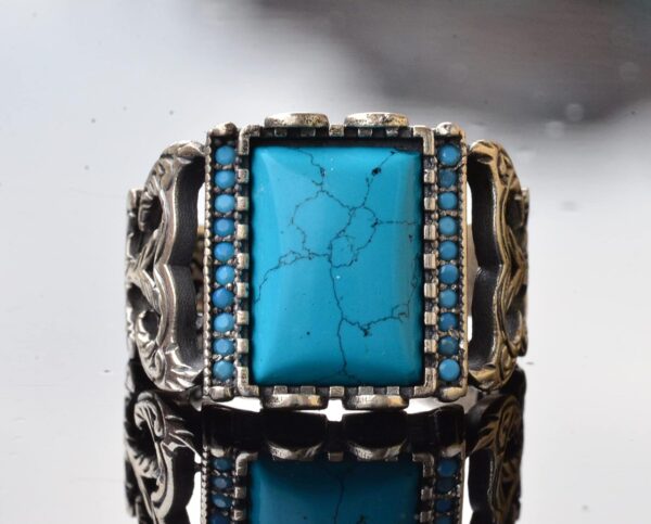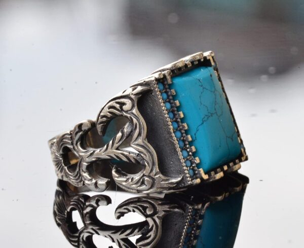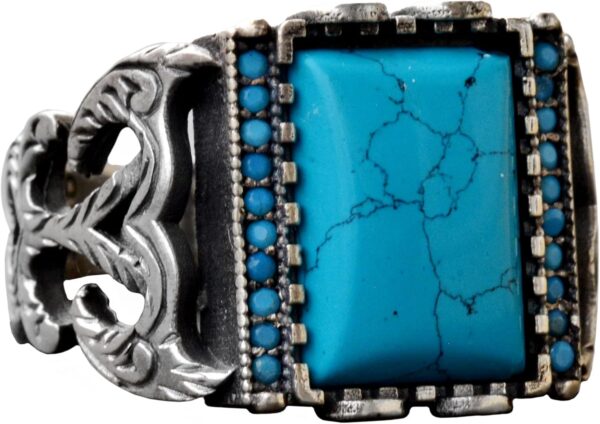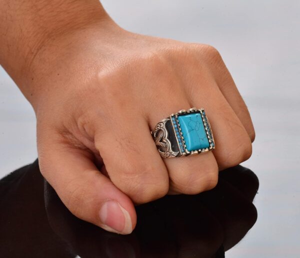 El Yapımı Vintage Tasarım Turkuaz Yüzük – 925 Ayar Gümüş Erkek Yüzüğü, Şık Ayrıntılarla