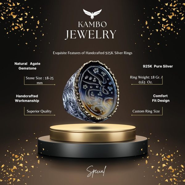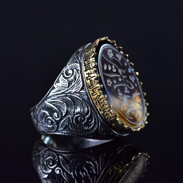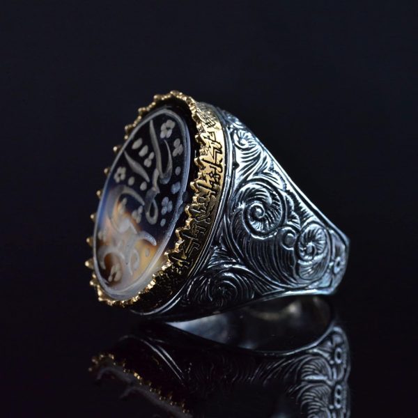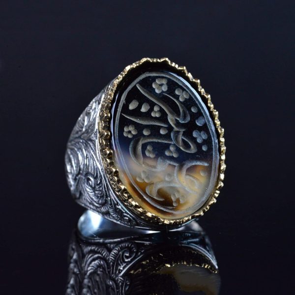 İSLAM SANATSAL TASARIMI: Yüzük, kültürel bir anlam ve sofistike bir dokunuş ekleyen şık bir İslami sanatsal tasarımı sergilemektedir. Bu benzersiz tasarım, Yemeni Agat’ın güzelliğini mükemmel bir şekilde tamamlayarak dikkat çekici bir parça haline getirir.