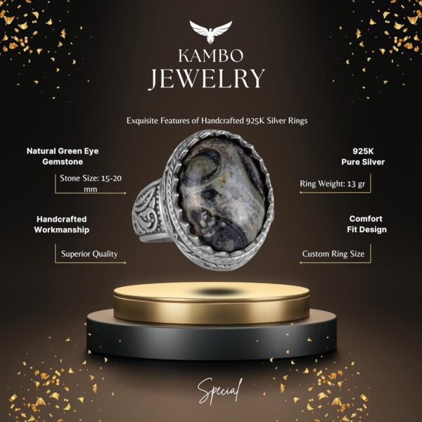 El Yapımı Yeşil Göz Doğal Taş Yüzük – Canlı 925K Katı Gümüş Erkek Yüzüğü