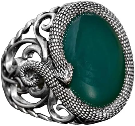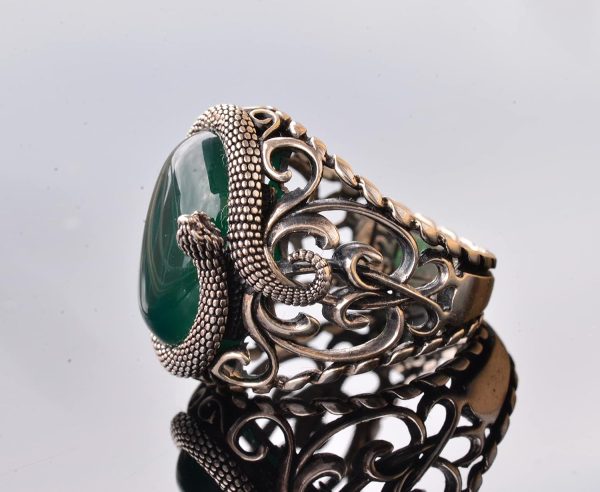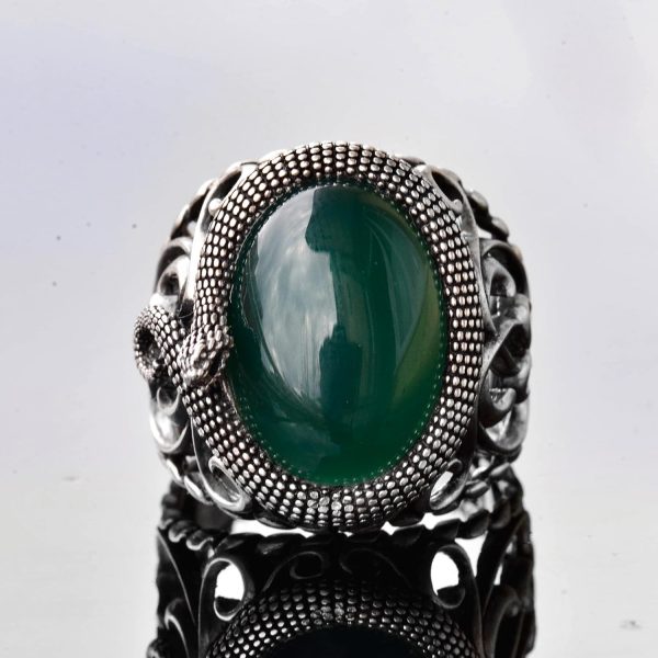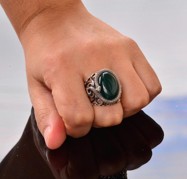 El Yapımı Yılan Tasarımlı Yüzük, Doğal Yeşim Taşı, Gümüş Erkek Yüzüğü – Bilgelik ve Koruma Sembolü