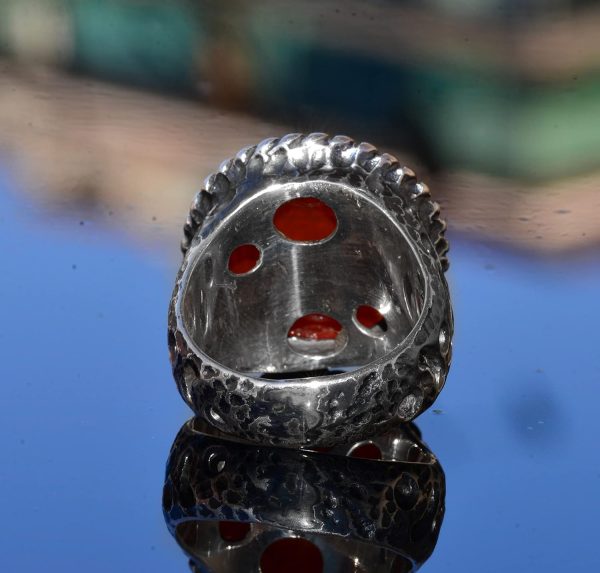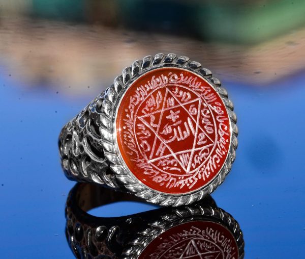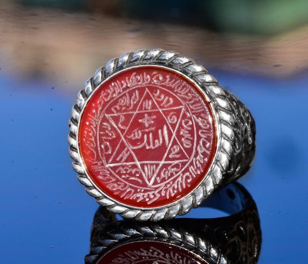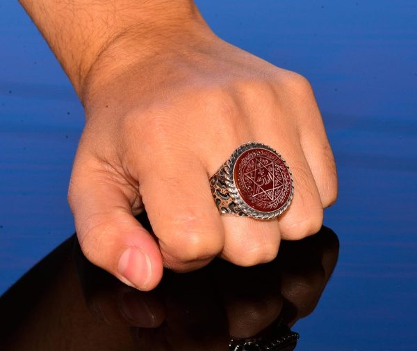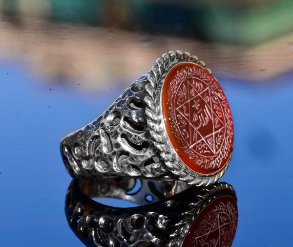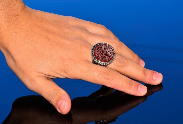 El Yapımı Yüzük, Ateş Taşı ile Gümüş Erkek Yüzüğü – Süleyman Yıldızı Amblemi, Cesaret ve Canlılık Sembolü (Ateş Taşı)