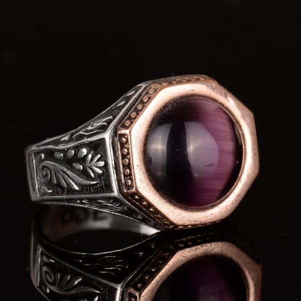 925 Ayar Gümüş El Yapımı Erkek Yüzük Doğal Ametist Taşı – Bizans İmparatorluğu Tasarımı