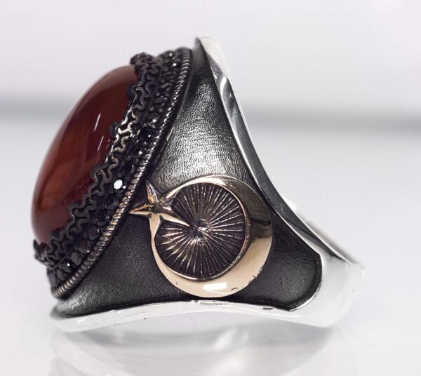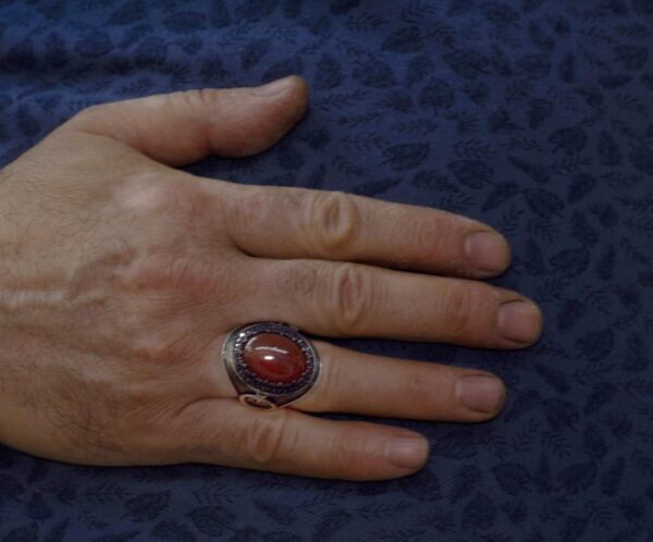 Bu muhteşem erkek yüzüğü, dayanıklılık ve sofistike bir parlaklık sunan yüksek kaliteli 925 ayar gümüşten yapılmıştır. Yüzük, canlı rengi ve denge sağlama özellikleri ile bilinen göz alıcı doğal kırmızı akik taşı ile süslenmiştir ve her kıyafet için güçlü bir ifade parçası oluşturur.
