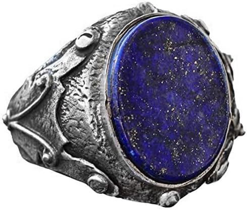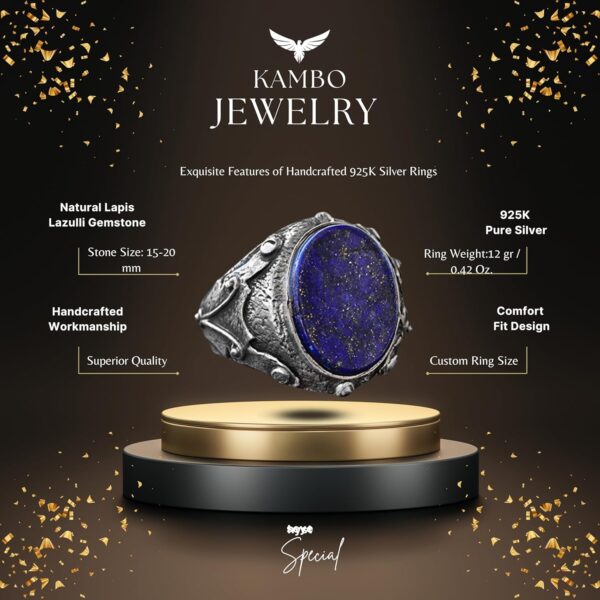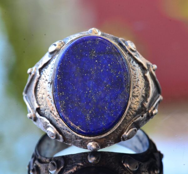 Erkek Doğal Lapis Lazuli Yüzük, 925 Ayar Gümüş, Ortaçağ Tasarımı ile El Yapımı
