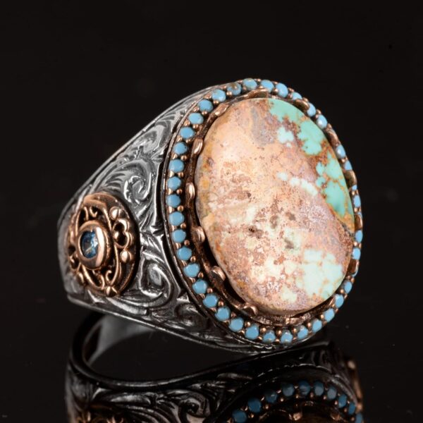 Erkek El Yapımı Gerçek Doğal Arizona Turkuaz Taş Yüzük, 925 Ayar Gümüş Yüzük, Sultan Yüzük