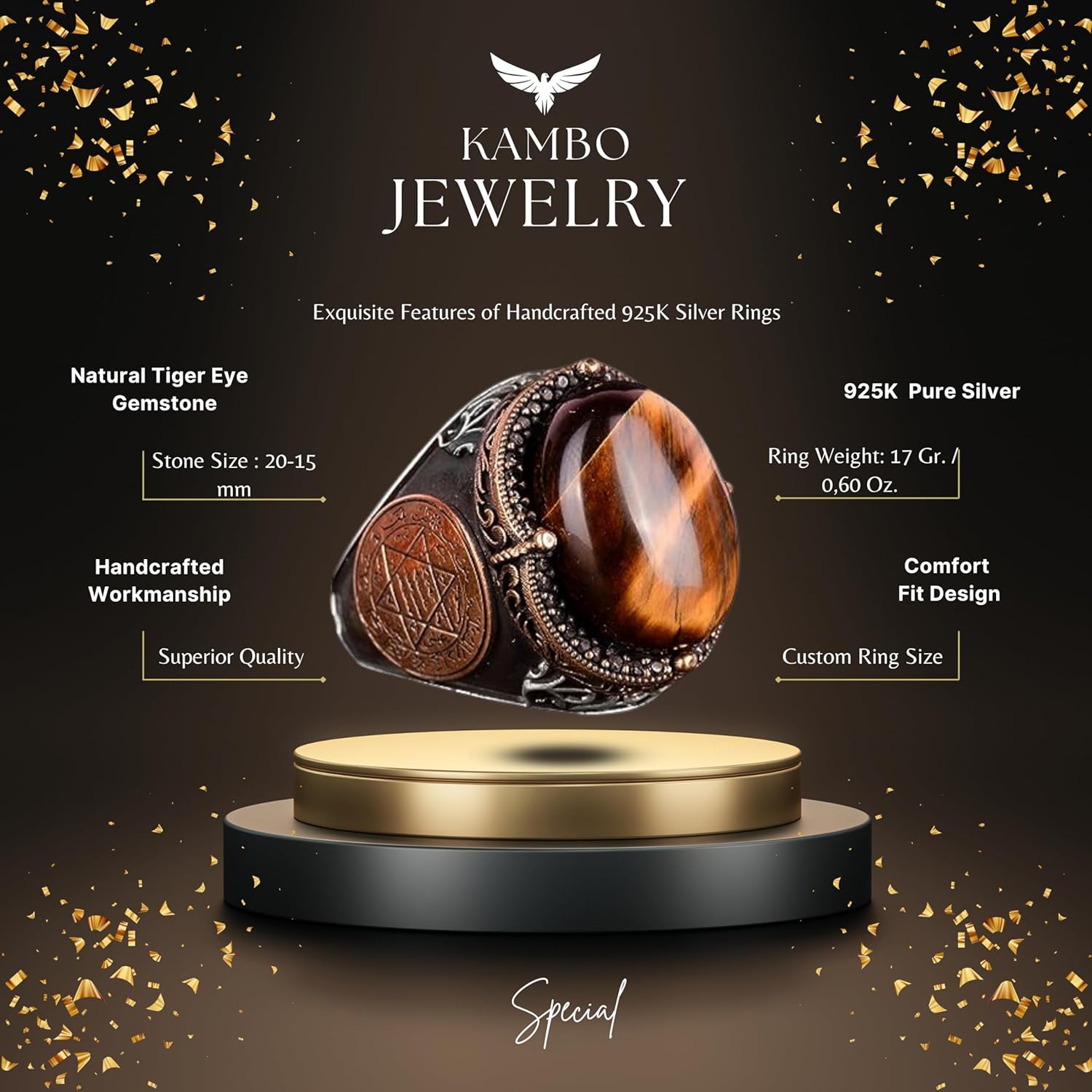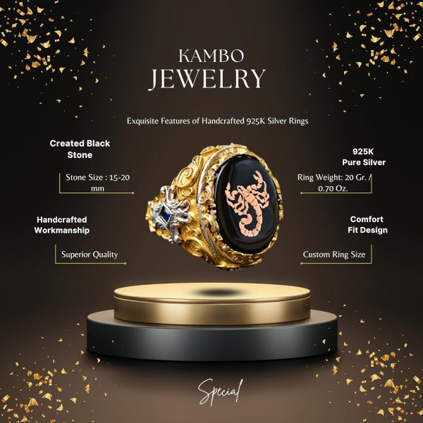Bu olağanüstü erkek yüzükle stilinizi geliştirin; katı 925 ayar gümüşten üretilmiş ve lüks bir altın kaplama ile tamamlanmıştır. Bu eşsiz yüzüğün merkezinde, güç, tutku ve akrep burcunu sembolize eden cesur bir akrep tasarımı ile süslenmiş çarpıcı bir siyah taş bulunmaktadır. Bu zarif ve sembolik tasarım yalnızca dikkat çekmekle kalmaz, aynı zamanda derin bir anlam taşır. Akrep burcunda doğanlar veya sembolik takılara değer veren herkes için mükemmel bir hediye olan bu yüzük, çeşitli etkinlikler için uygundur; günlük kullanımdan resmi etkinliklere kadar her kıyafete benzersiz bir dokunuş katar.