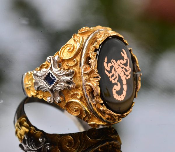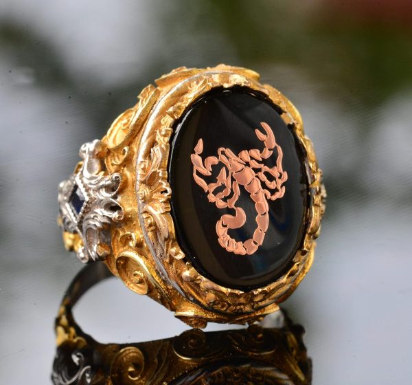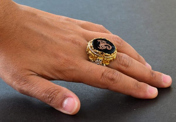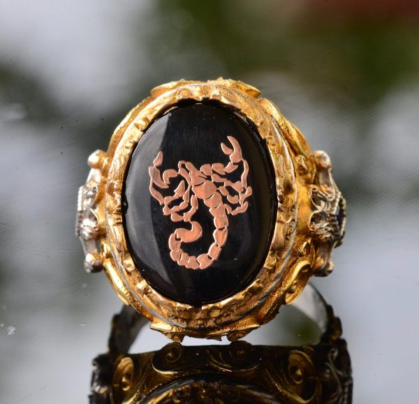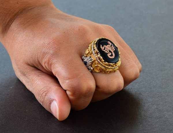 Erkek Gümüş Yüzük – Altın Kaplama Yüzük – Damgalı Yüzük (Akrep)