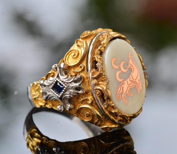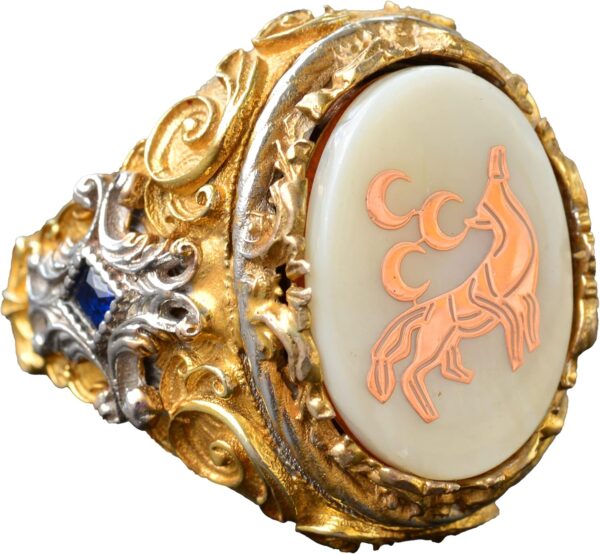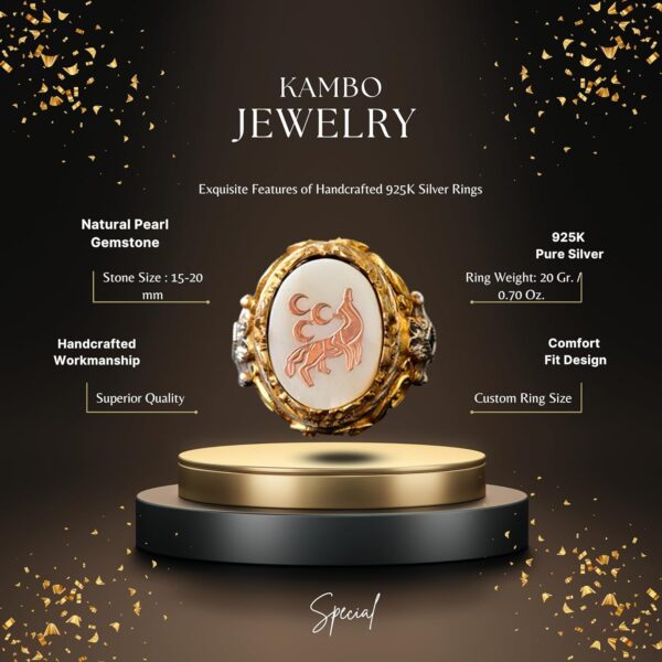 Bu muhteşem erkek yüzükle stilinizi yükseltin; katmanlı altın kaplama detaylarla özenle işlenmiş 925 ayar gümüşten yapılmıştır. Yüzüğün merkezinde yer alan parlatılmış inci taşı, saflığı ve bilgeliği simgeler. Yüzük, güç, özgürlük ve sadakati temsil eden çarpıcı bir kurt sembolü taşır. Bu eşsiz tasarım sadece cesur bir ifade oluşturmakla kalmaz, aynı zamanda derin sembolik anlamlar taşır. Hayvan severler, sembol tutkunları veya kaliteli takı takdir eden herkes için ideal olan bu yüzük, anlamlı ve düşünceli bir hediye olarak hizmet eder. Günlük gezilerden resmi etkinliklere kadar çeşitli durumlar için uygun olan bu yüzük, her kıyafete ihtişamlı bir zarafet katmaktadır.