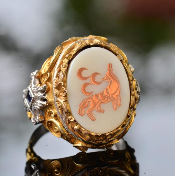 Gümüş Erkek Yüzük, Kurt Sembolü, İnci Taşlı Yüzük