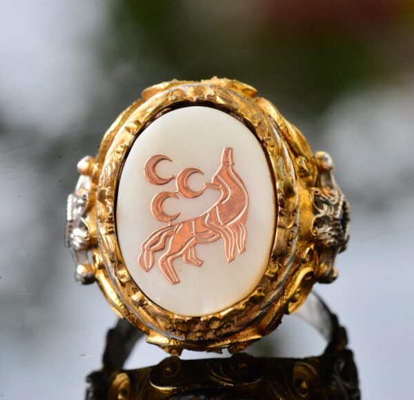 Erkek Gümüş Yüzük – Sedef Doğal Taşı – Yüzük (Kurt)