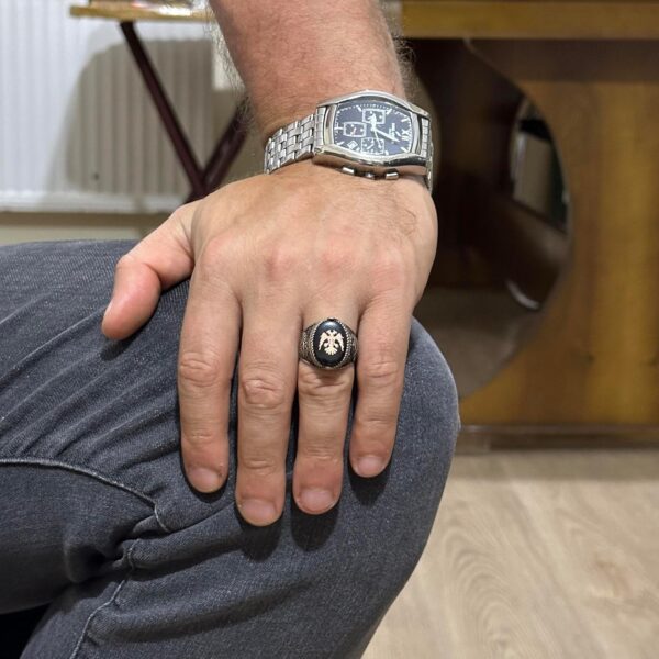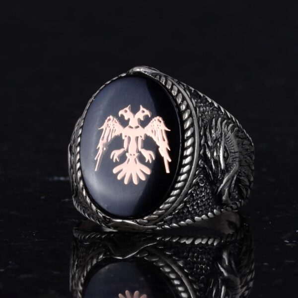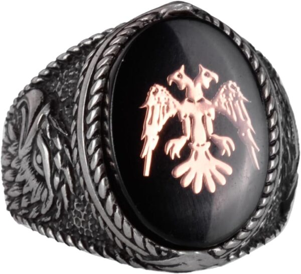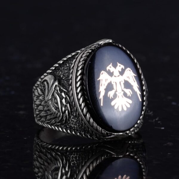 Erkek İki Başlı Kartal Yüzüğü – Kartal Sembolü Takı – 925K Gümüş El Yapımı Erkek Yüzüğü (Siyah)