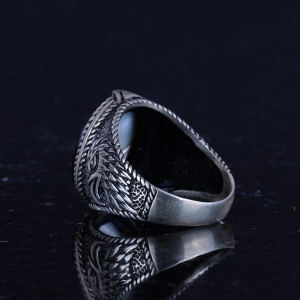 Erkeklerin İki Başlı Kartal Yüzüğü – 925K Gümüş El Yapımı Erkek Yüzüğü ile Oluşturulmuş İnci