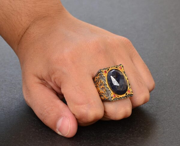 Erkek Sterlin Gümüş Sultan Yüzük – Doğal Safir Taşı