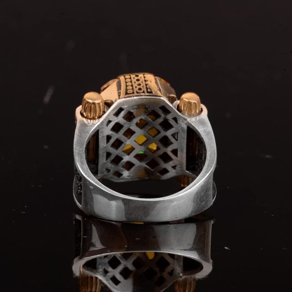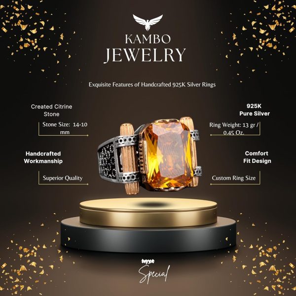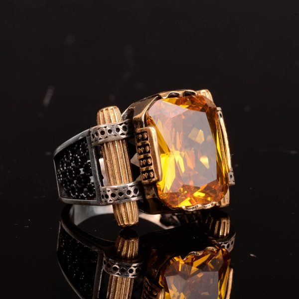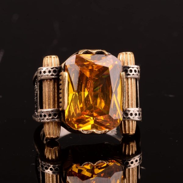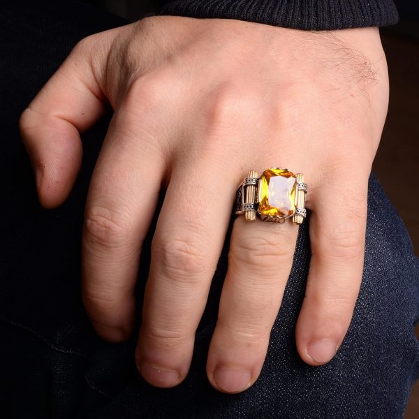 Erkekler için 925 Ayar Gümüş El Yapımı Yüzük, Doğal Olmayan Sitrin Taşı Yüzük