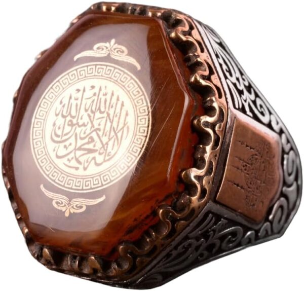 Erkekler için 925 Ayar Gümüş Yüzük, Amber Taşı, İslami Kelime-i Tevhid Yüzük, Müslüman Hediyesi, Dini Yüzük