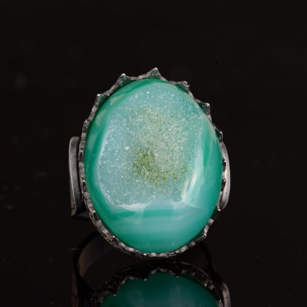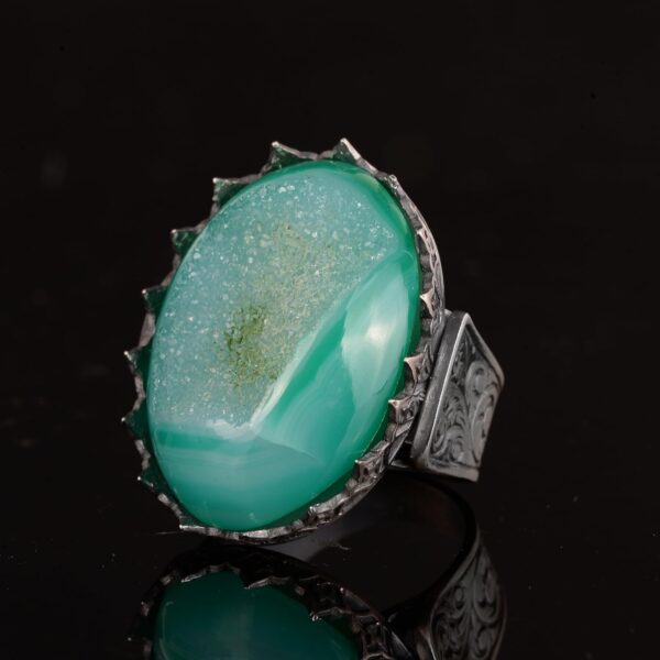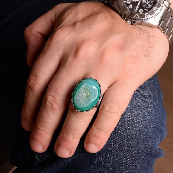 Erkekler için 925 Ayar Gümüş Yüzük, Doğal Druzy Kuvars Taşlı