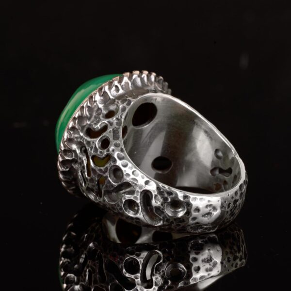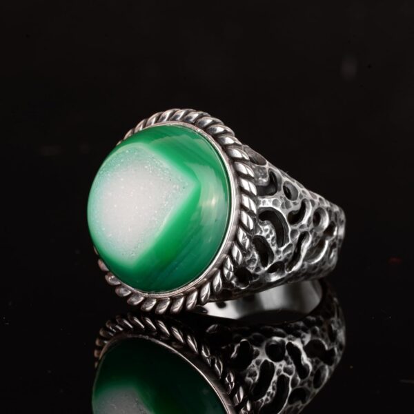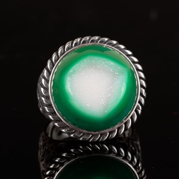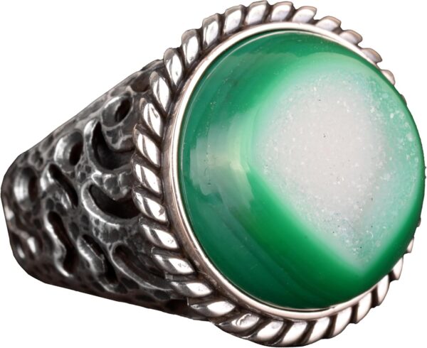 Erkekler için 925 Ayar Gümüş Yüzük, Doğal Druzy Kuvars: Mavi, Yeşil, Kırmızı Varyasyonlar (Yeşil)